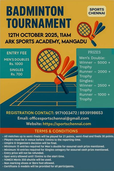 At Sports Chennai, we believe in the power of sports to inspire and unite people. Our platform offers a wide range of sports equipment, apparel, and accessories that cater to enthusiasts of all levels. Whether you are a beginner or a seasoned athlete, we have something for everyone. Join us as we celebrate the spirit of sportsmanship and foster a vibrant community. Explore our offerings and elevate your game today!